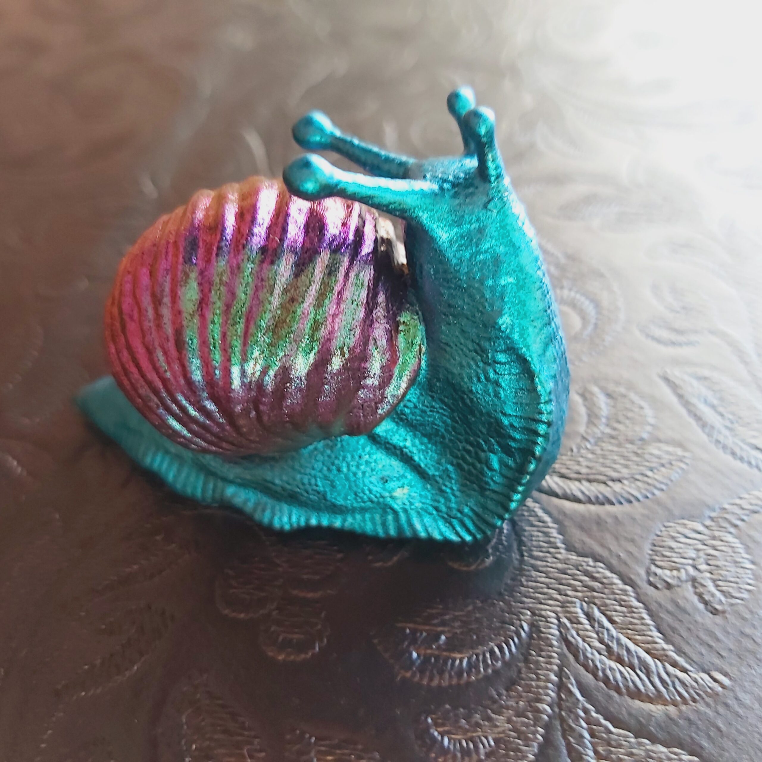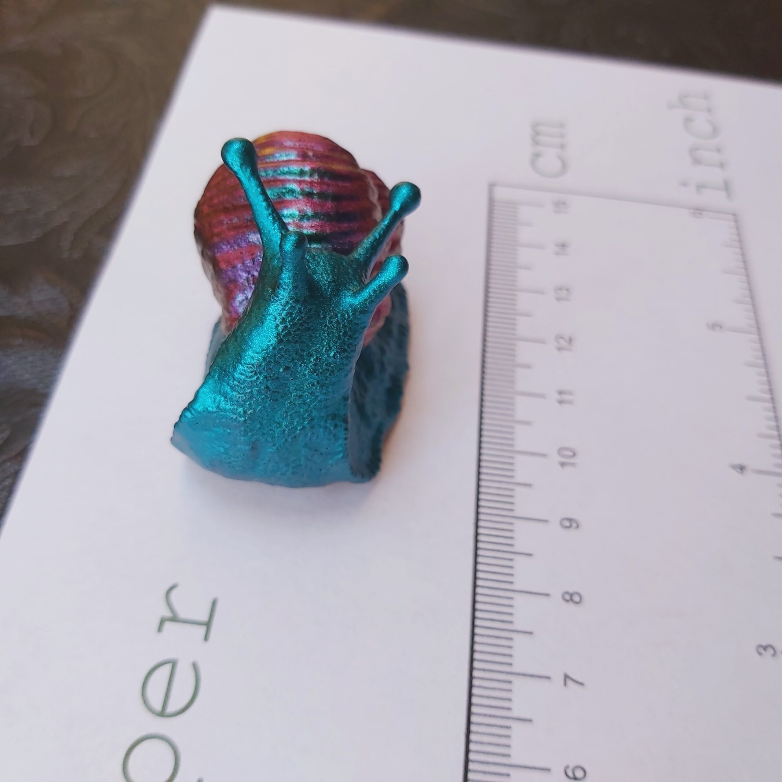 This unique 3D magnet features a charming colorshifting snail with a lovely shell, designed to bring personality to your fridge, whiteboard, or any magnetic surface. The figure has two very strong neodymium magnets embedded in the base using durable epoxy resin.